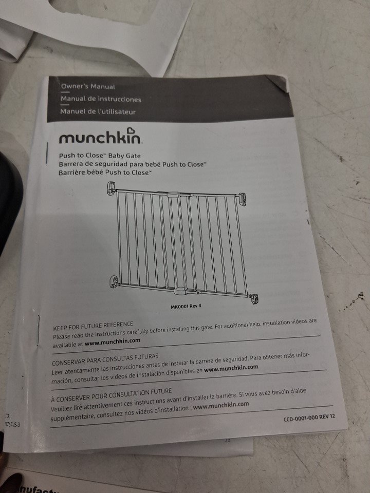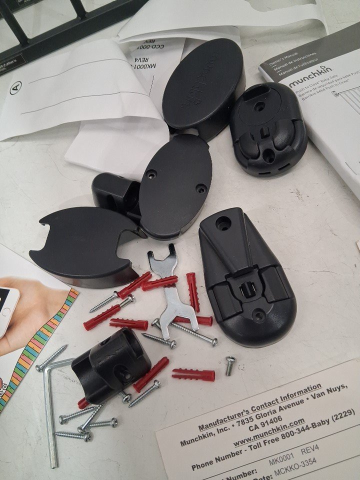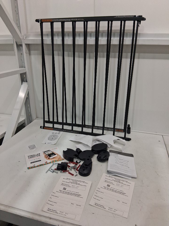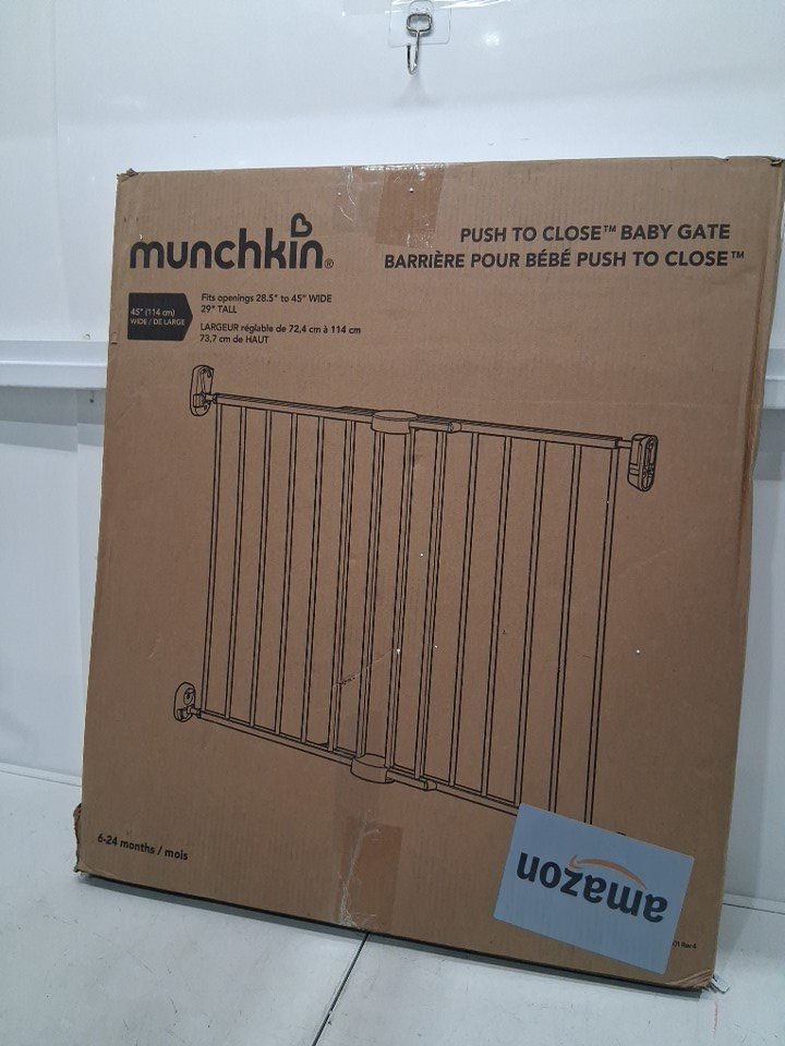 MUNCHKIN PUSH TO CLOSE BABY GATE FOR STAIRS WITH HARDWARE - 28.5" - 45" x 29" - BLACK (MODEL: MK0001)