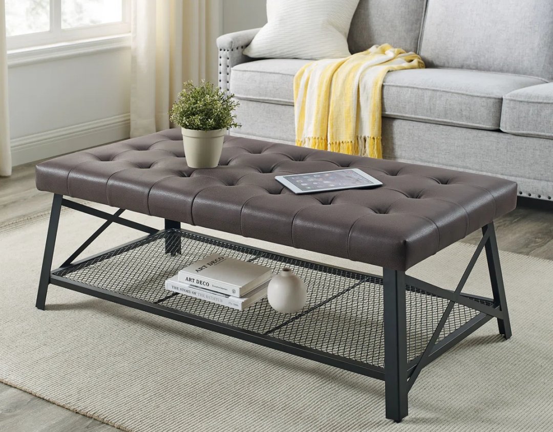 Mercury Row Sepviva Coffee Table with Sturdy Black Powder-Coated Metal Frame and Spacious Lower Storage Shelf - Dark Brown (Model: D1606)