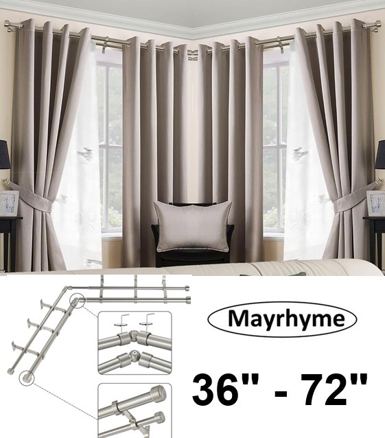 MAYRHYME Corner Window Curtain Rods with Aluminum End Cap Finials and Brackets - 36"-72" - Brushed Nickel