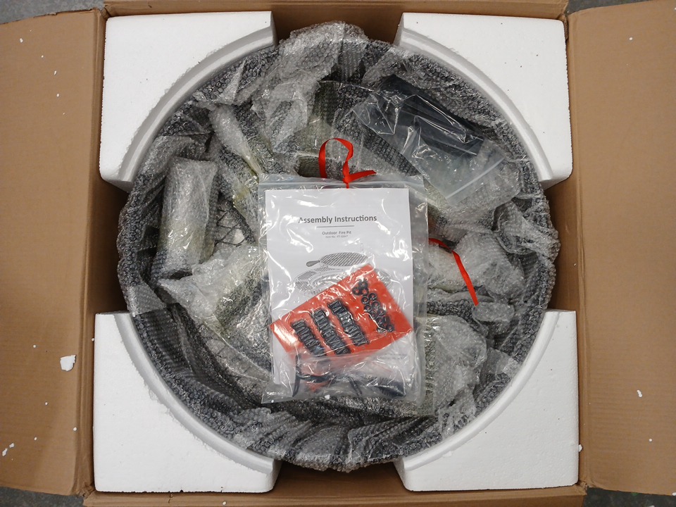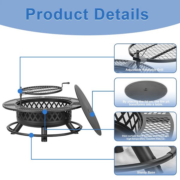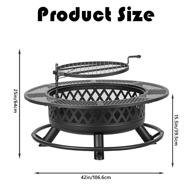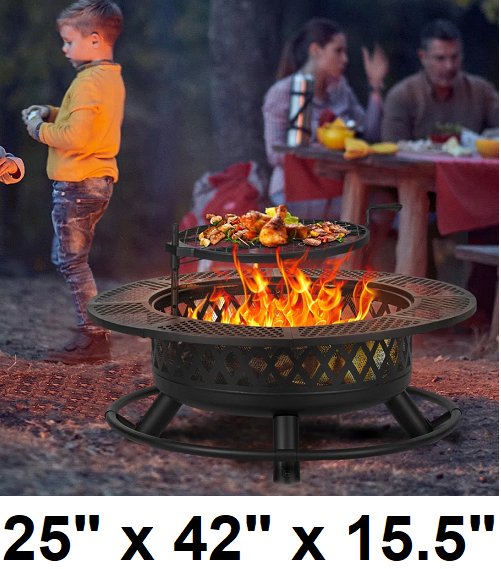 corrigan studio fire pit with grill and lid - 25" x 42" x 15.5" - black (model: ft-32847)