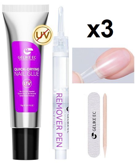 3 (4PC) gelike Solid Nail Glue Gel - Quick Drying Gel Nail Polish with Remover - 15G