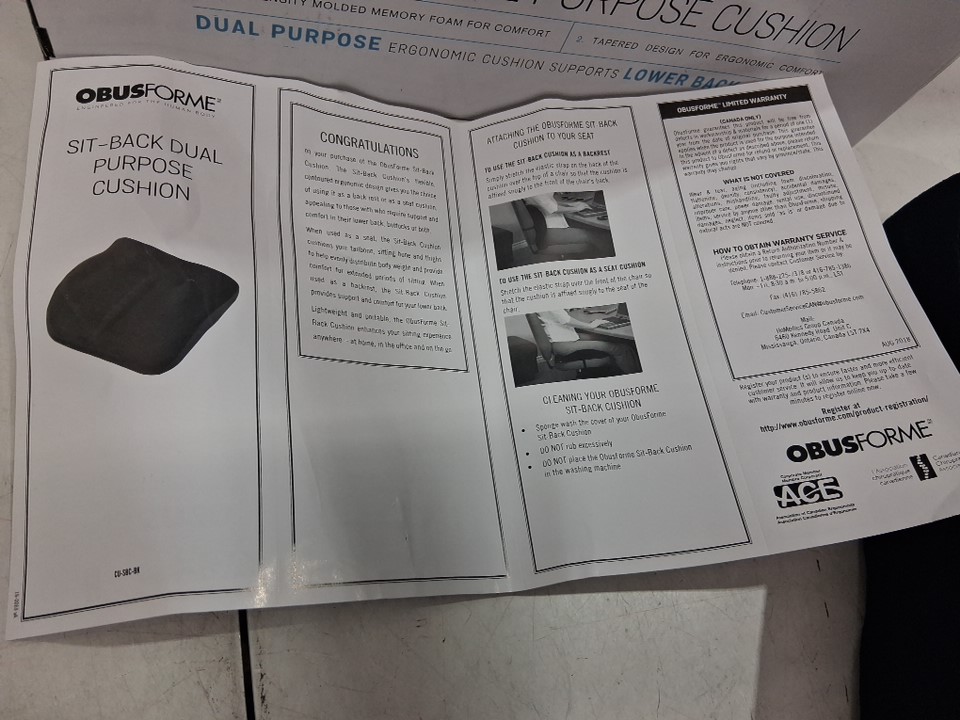 OBUSFORME SIT-BACK DUAL PURPOSE SEAT/LUMBAR CUSHION - 15" - BLACK - (MODEL: CU-SBC-BK)