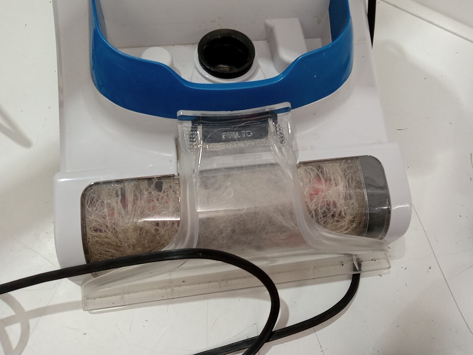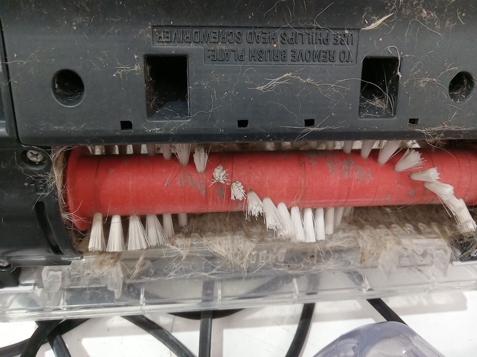 there is dog hair in the brush head roller and in the water tanks of the cleaner, please see photos