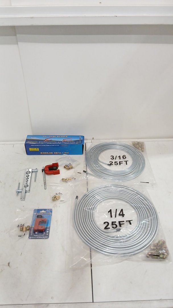 55PC SMSEACE Copper-Plated Brake Line SINGLE FLARING KIT WITH FITTINGS - 3/16" + 1/4" - 25FT EACH