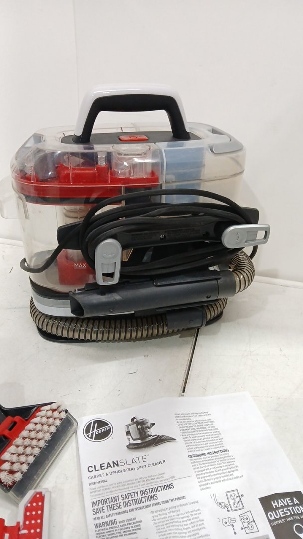 there is a significant amount of residue/dirt from previous use as well as we are missing the cleaning solution and two attachement heads, please see photos (product was tested and working, no indicator light)