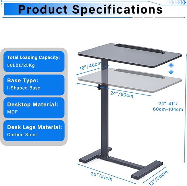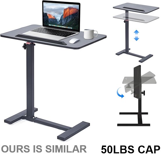 ASDJAKZP Height Adjustable Mobile Table with Wheels - 50LBS CAP - 24" - 41" - BLACK/RED WOOD (MODEL: ZB04-G621-S6UK)