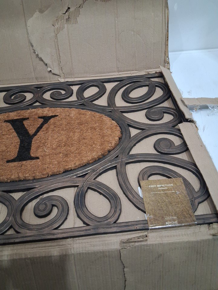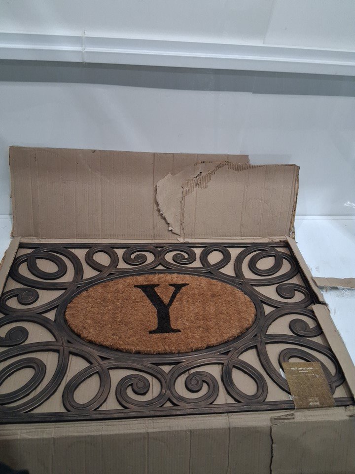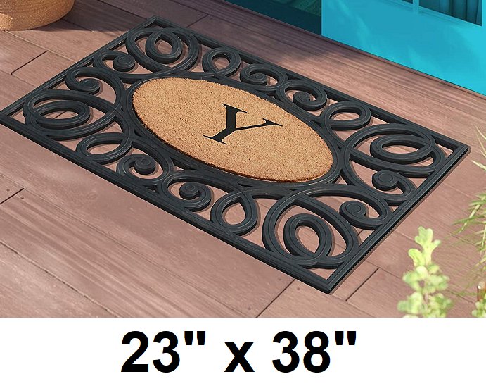Elegant Circles Rubber and Coir Mat for Outdoor Entrance Heavy Duty - Letter Y 23" x 38" - brown/black