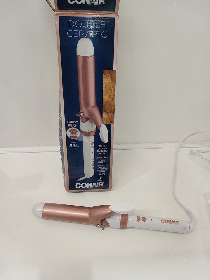 CONAIR DOUBLE CERAMIC CURLING IRON - 1 1/4" BARREL - WHITE/ROSE GOLD (MODEL: CD702GNC)