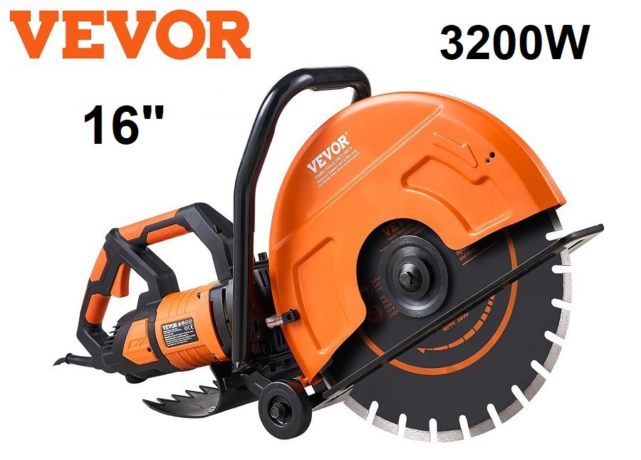 VEVOR Electric CORDED CIRCULAR Concrete Saw - Max. 6 in Adjustable Cutting Depth - 16" - 3200w - orange (model: dc425)