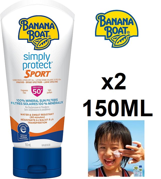 2 banana boat simply protect sport spf 50+ 100% mineral sun filters - 150ml each