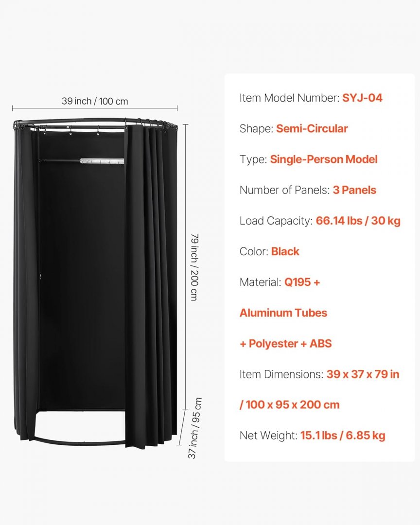 VEVOR PORTABLE fitting ROOM with polyester curtains - 39" x 37" x 79" - BLACK (MODEL: SYJ-04)