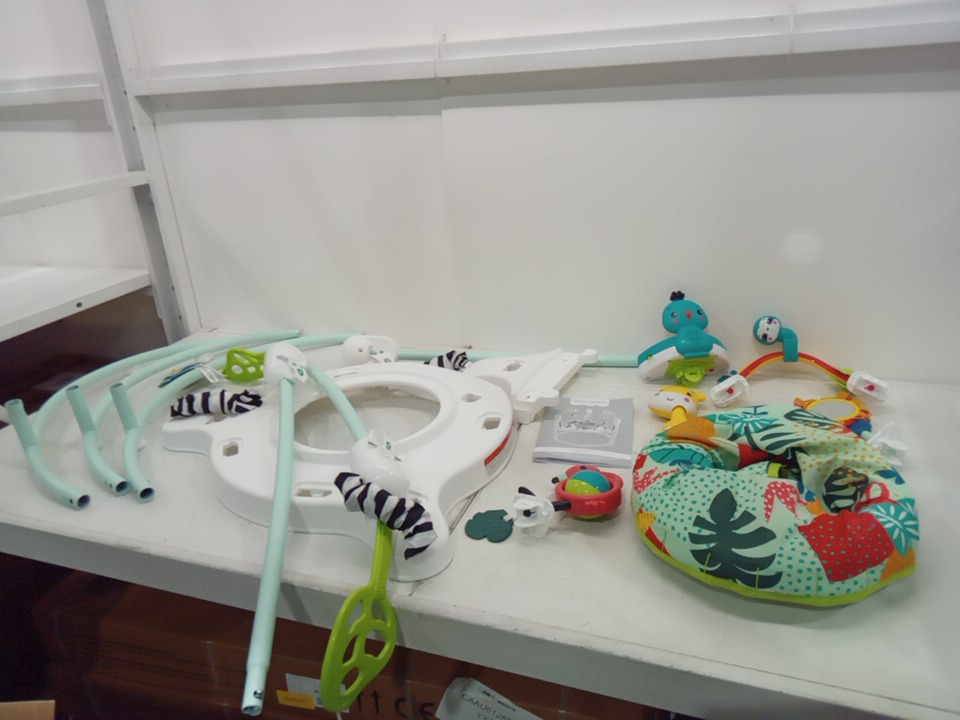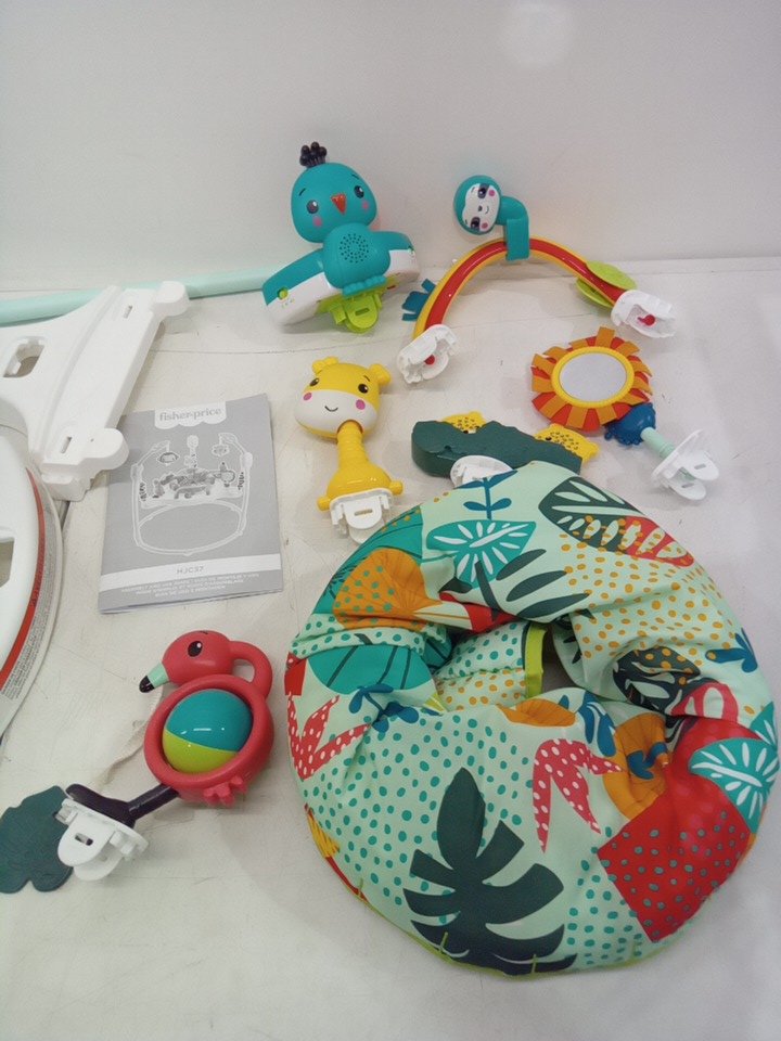 Fisher-Price Jumperoo Interactive Bouncer Baby Activity Center with Lights Sounds and Music - Jumping Jungle/Mint Blue/Green (model: HJC37-9564)