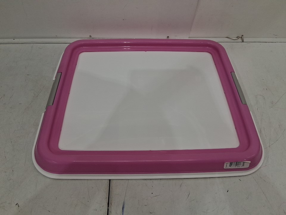 IRIS PET DOG SQUARE POTTY TRAINING MAT HOLDER WITH HINGES FOR EASY OPEN - HOLDS PADS 17" X 17" - PINK/WHITE (MODEL: FT-500)