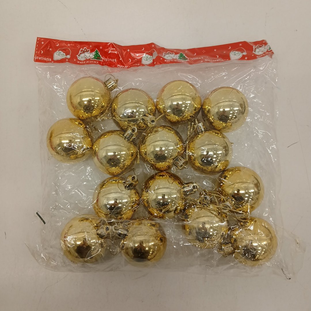15PK CHRISTMAS ORNAMENTS BOBBLES DECORATIONS - 2" - GOLD