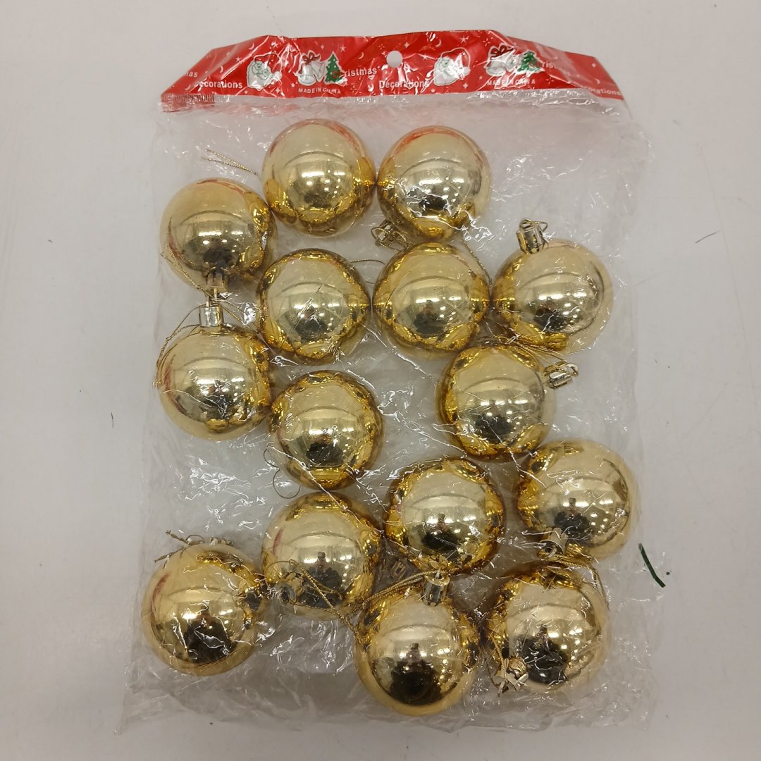 15PK CHRISTMAS ORNAMENTS BOBBLES DECORATIONS - 2.5" - GOLD