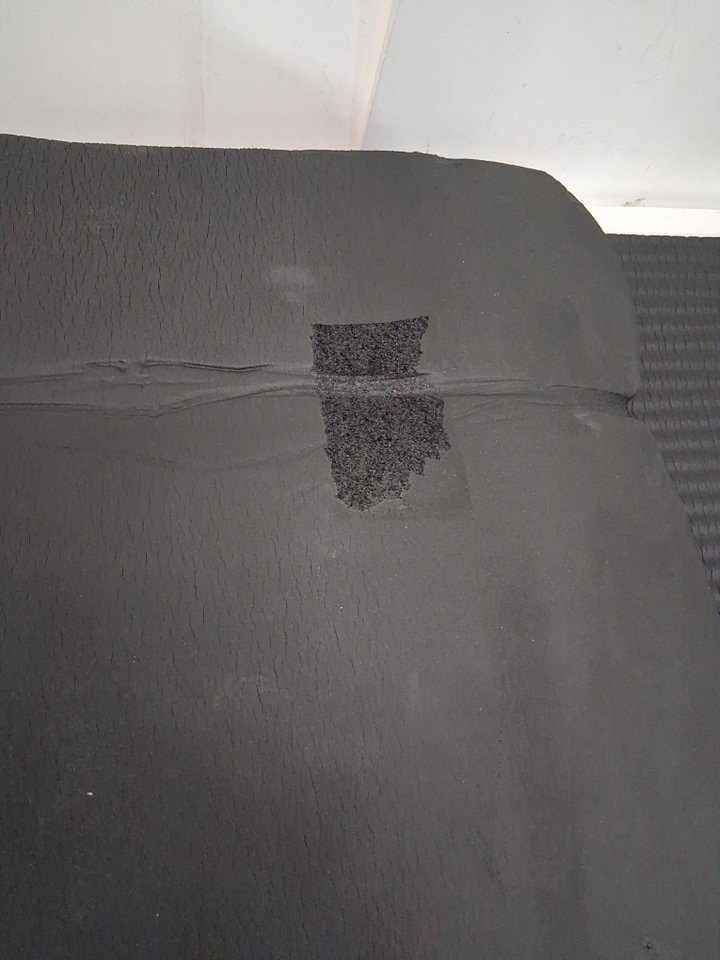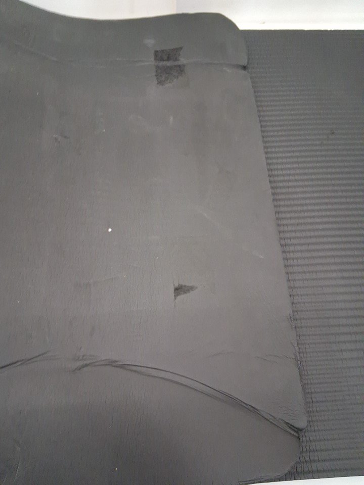 Mat has minor aesthetic damage on bottom of mat and small abrasions on top of mat indicating short-term use. (See photos)
