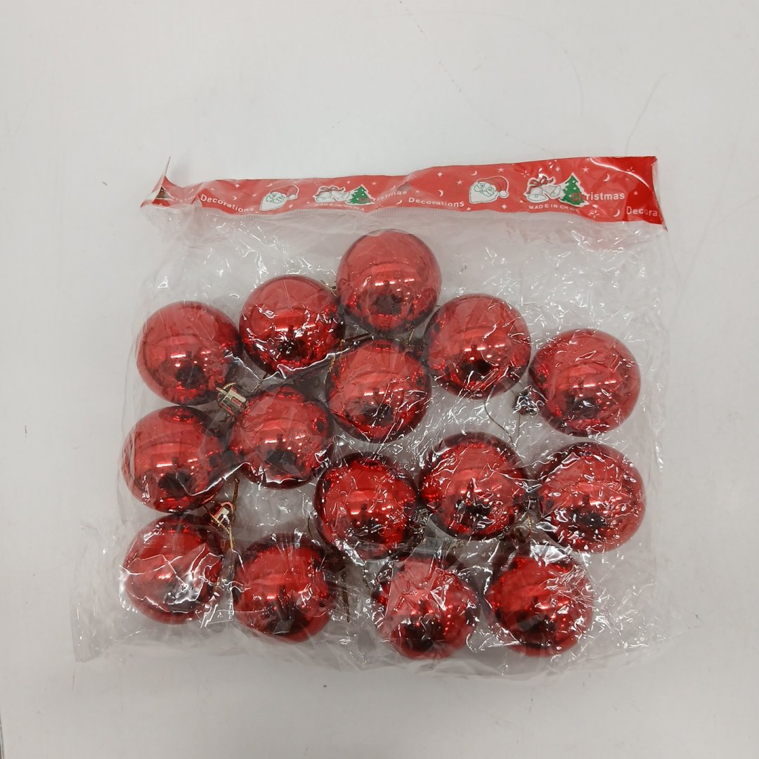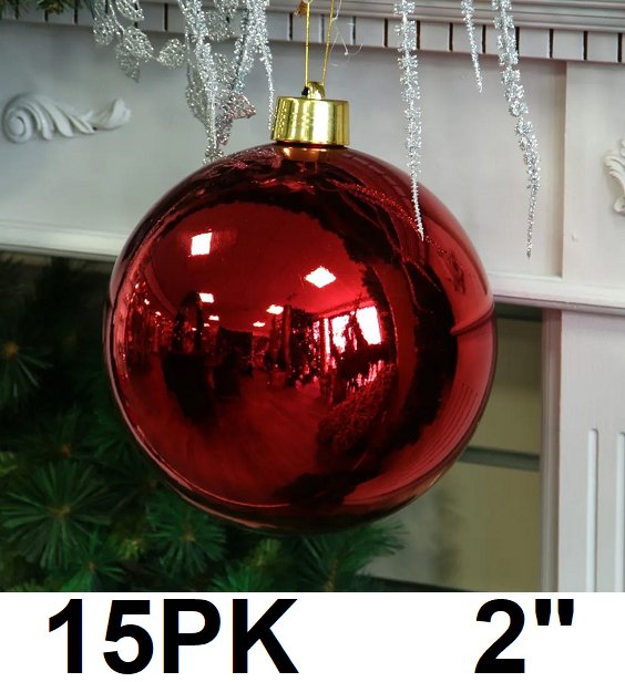 15PK CHRISTMAS ORNAMENTS BOBBLES DECORATIONS - 2" - SHINY RED