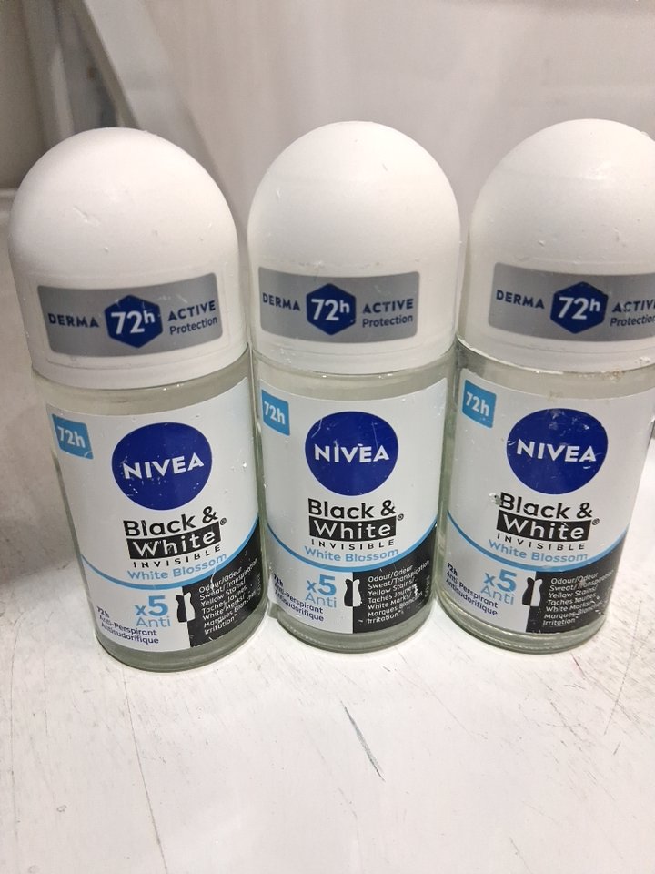 3 nivea black and white invisible roll-on antiperspirant - 72 hour protection - 50ml each - water lily