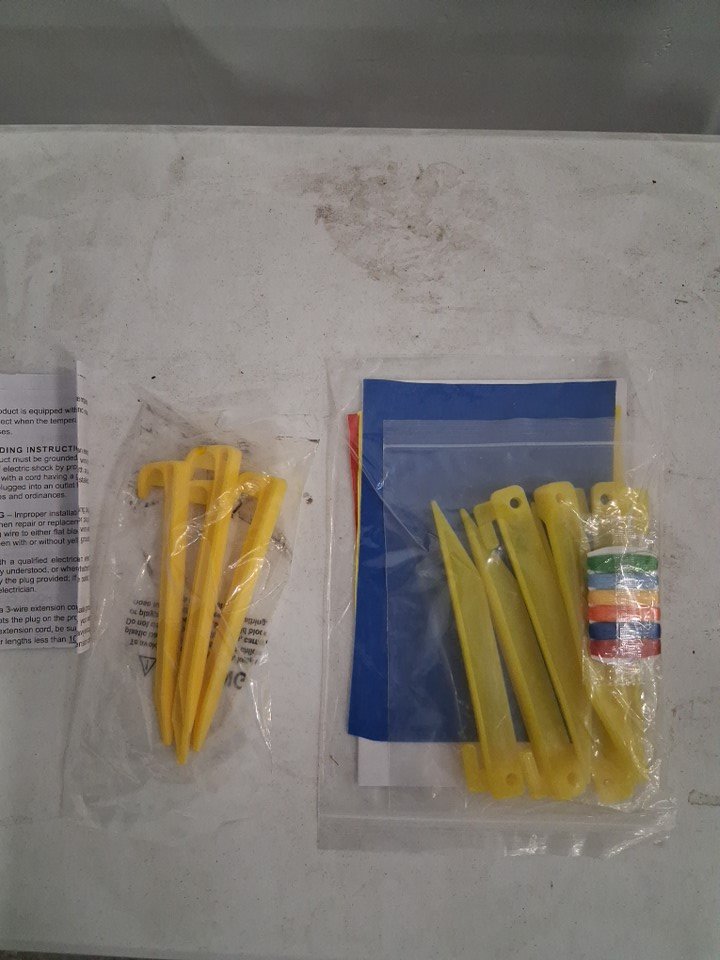 Please See Photos: - There is some light debris/dust on the item and very minor stains consistent with previous light use. - There are some fold marks presumably caused during prolonged storage - Pump was tested for power and function