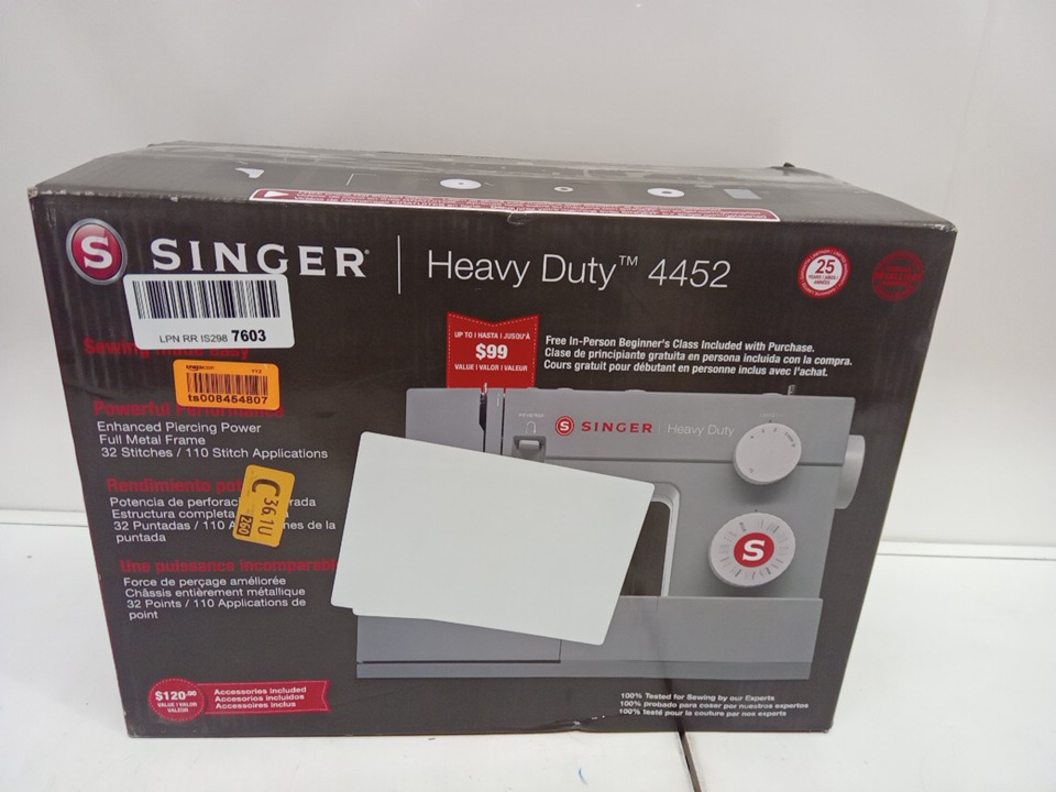 SINGER heavy duty sewing machine - 15.5" x 6" x 12" - 84W - white/grey - (model:HD4452)