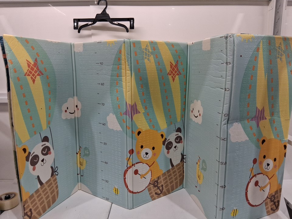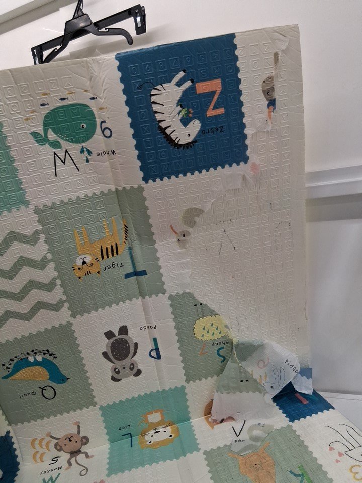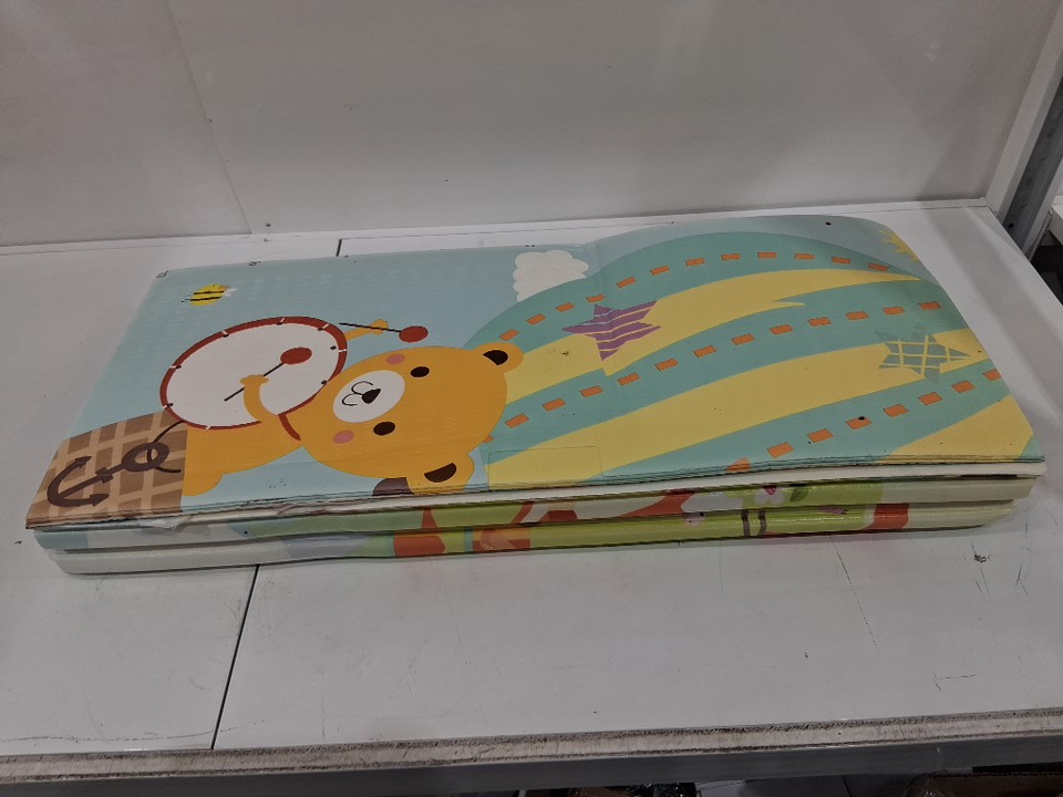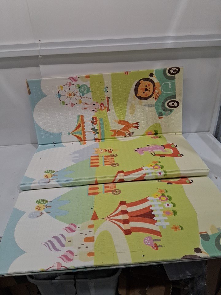 Item shows signs of previous use such as mild stains on surface from dirt/debris. Items pattern is peeling on one side of the mat.
