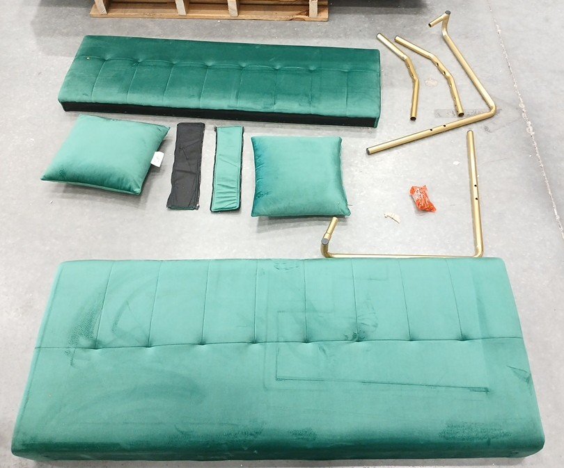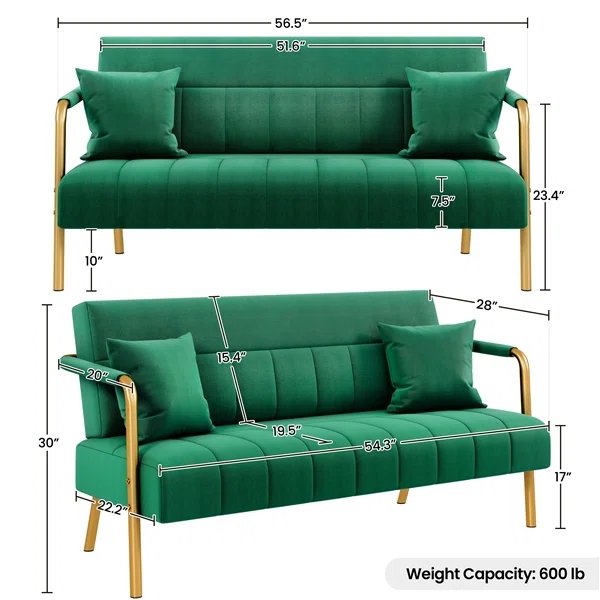 Maddison Two-Cushion Upholstered Sofa - 600lbs cap - 30'' x 56.5'' x 28'' - Green/Gold