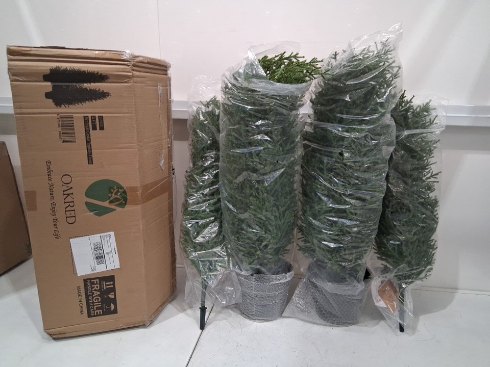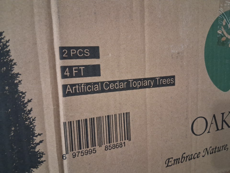 2PK OAKRED ARTIFICIAL POTTED CEDAR TOPIARY TREES FOR HOME DECOR - 4FT , GREEN WITH BLACK POT
