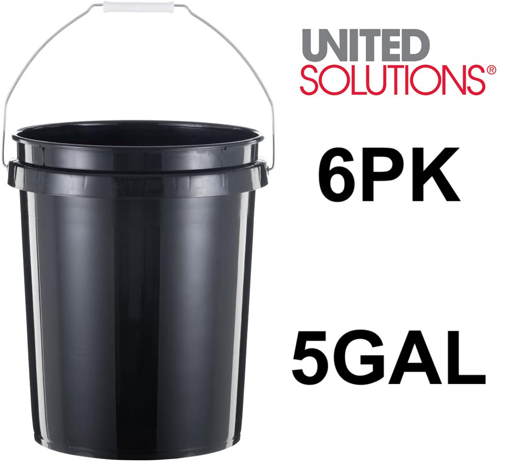 6PK United Solutions Heavy-Duty Buckets with Snap-On Lids - 5 gallon - black (model: pn0250ec)