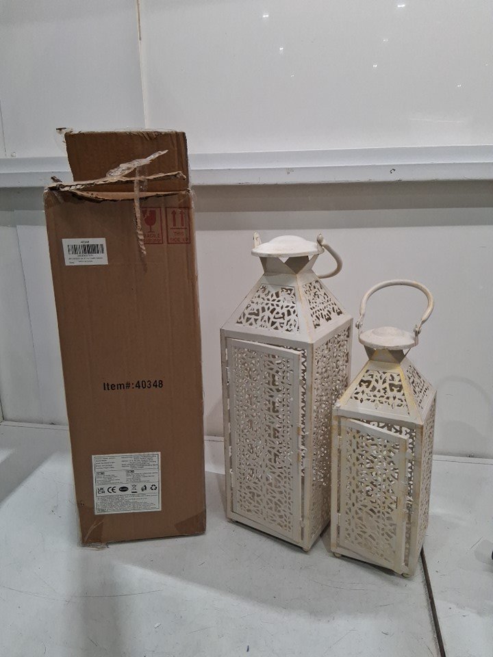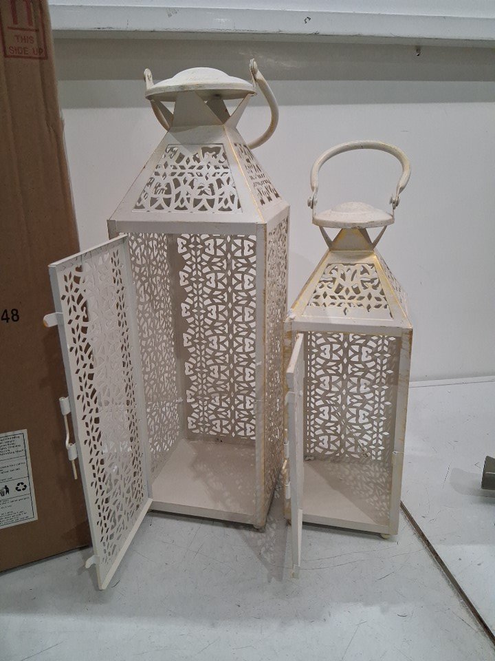 2pc JHY DESIGN Metal Vintage Candle Lanterns - 19" - 14" - white/brushed gold