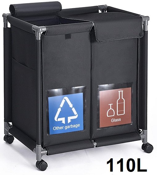 xcellent global xg recycle bins with cover top lids and wheels - 110L (55L each compartment) - black/grey (model: F-HG663)
