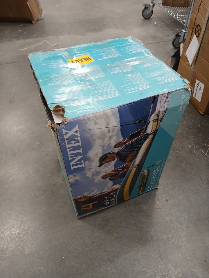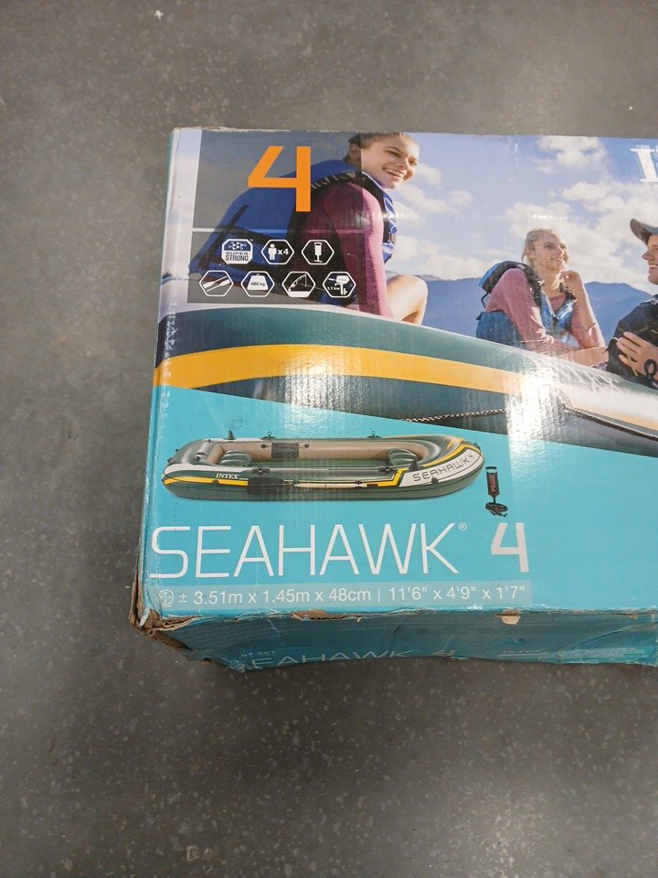 Intex Seahawk 4-Person Inflatable Fishing & Recreational Boat Set with Aluminum Oars, High-Output Air Pump, I-Beam Floor, Motor Mount, Repair Patch Kit and Durable Puncture-Resistant PVC - Green (Model 68351EP)