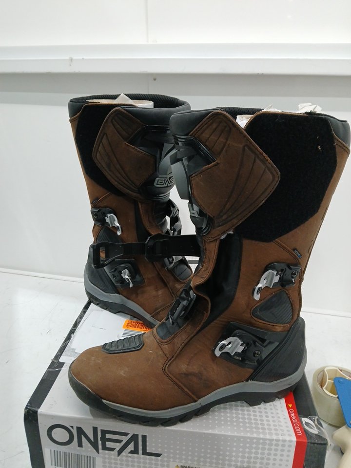 dirt and scuffing on leather indicates light use, soles and clips in good conditon