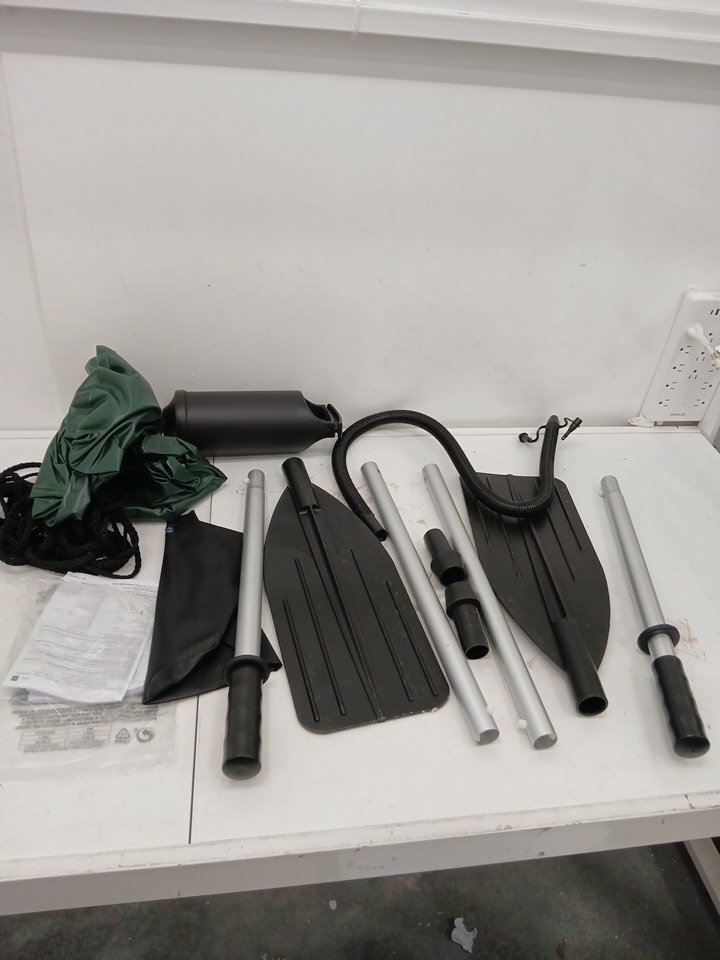 Intex Seahawk 4-Person Inflatable Fishing & Recreational Boat Set with Aluminum Oars, High-Output Air Pump, I-Beam Floor, Motor Mount, Repair Patch Kit and Durable Puncture-Resistant PVC - Green (Model 68351EP)