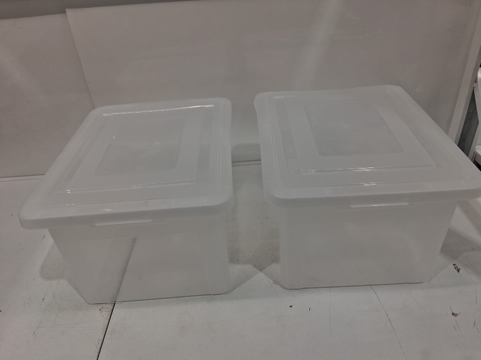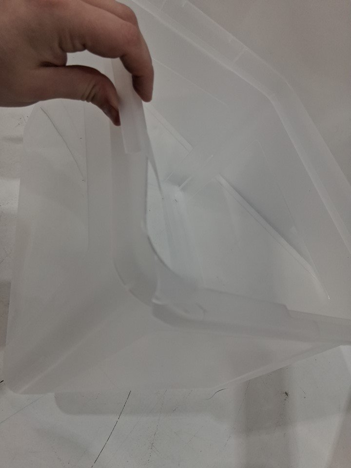 One bin has a cracked rim and is missing some plastic. Does not impede function.