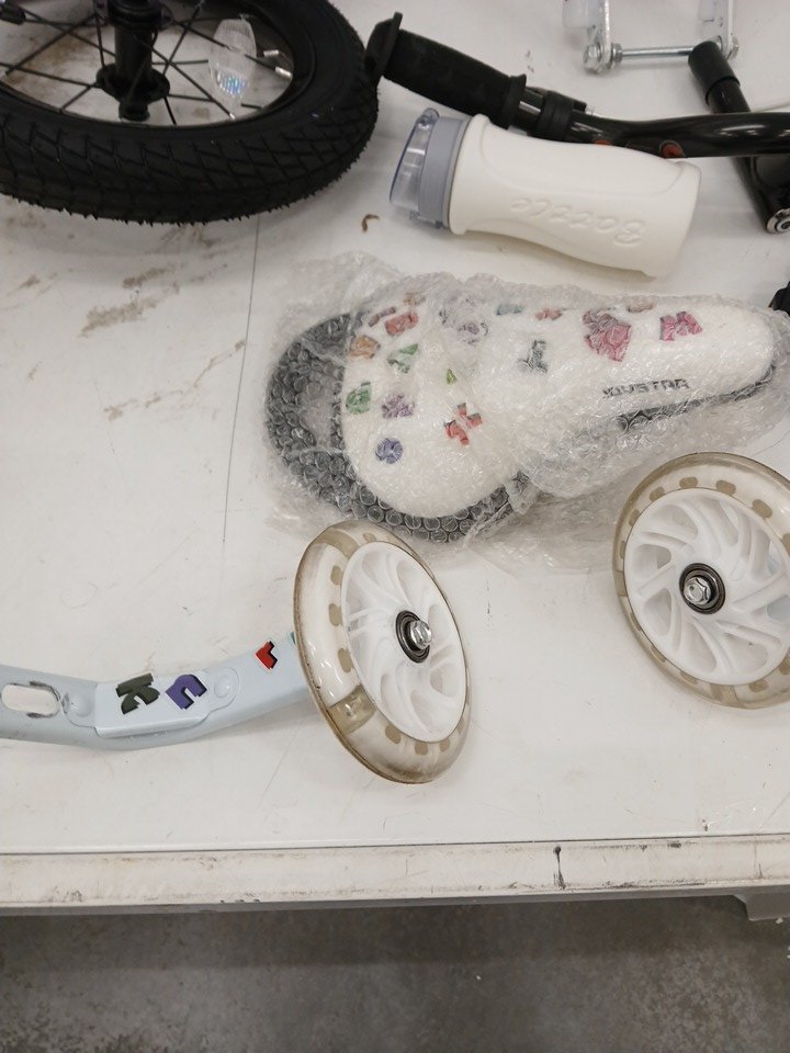 Please note there is a presence of scuffs/scratches at connecting points of the bike, as well as light dirt/debris, indicating prior use. See photos attached.