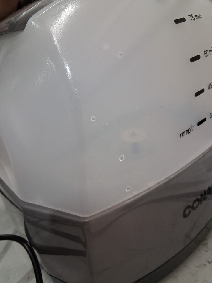 Item tested for power. Item has water droplets and light dust from previous use. (See photos)