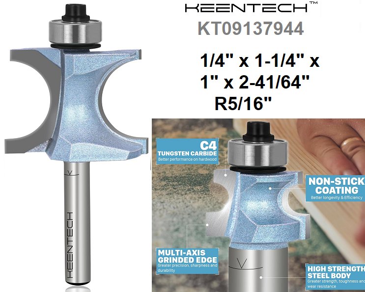 keentech traditional industrial grade beading router bit for edge forming in woodworking - 1/4" x 1-1/4" x 1" x 2-41/64" - r5/16" (model: kt09137944)