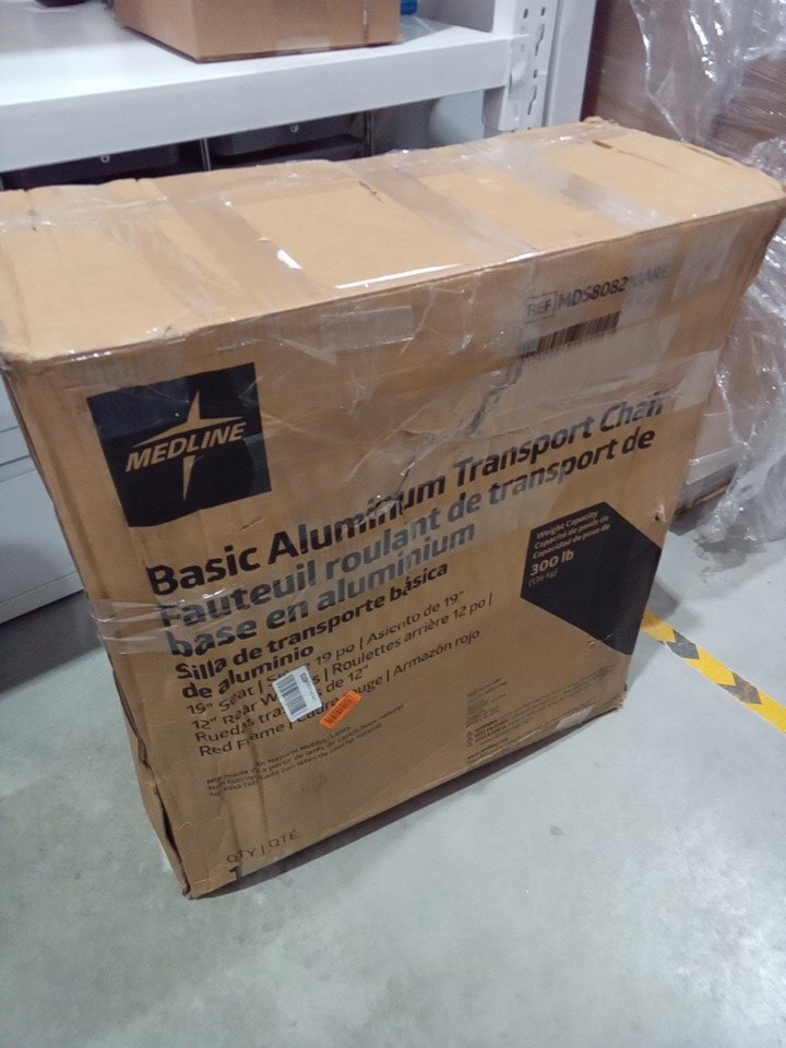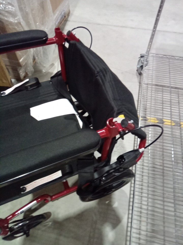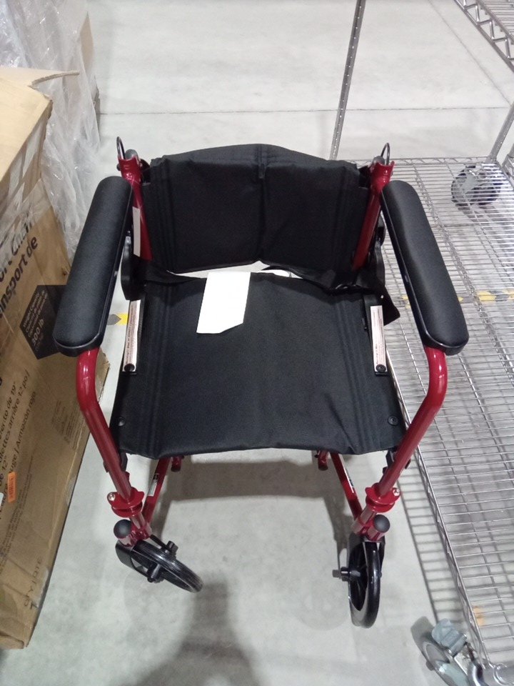 MEDLINE BASIC ALUMINUM TRANSPORT WHEELCHAIR - 19" - 12" REAR WHEELS WITH BRAKES - RED (MODEL: MDS808210ARE)