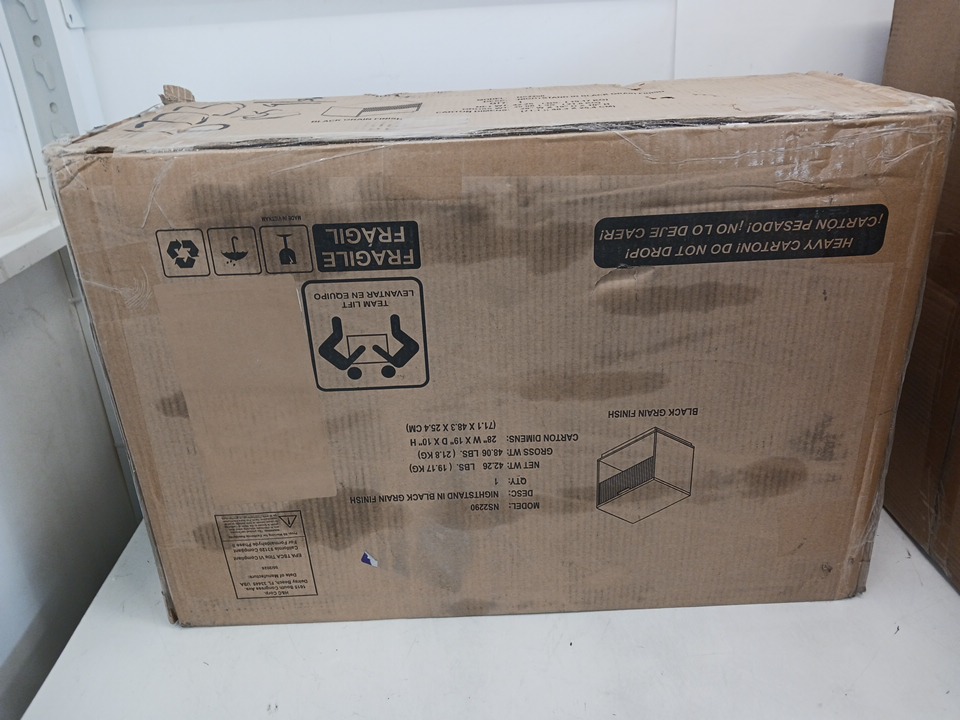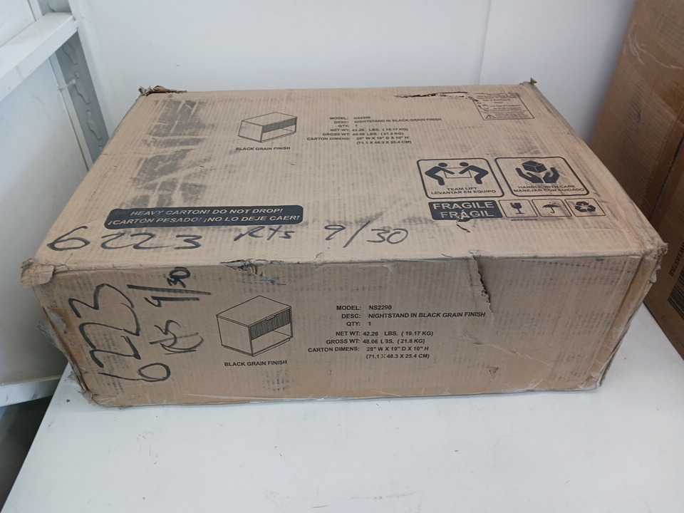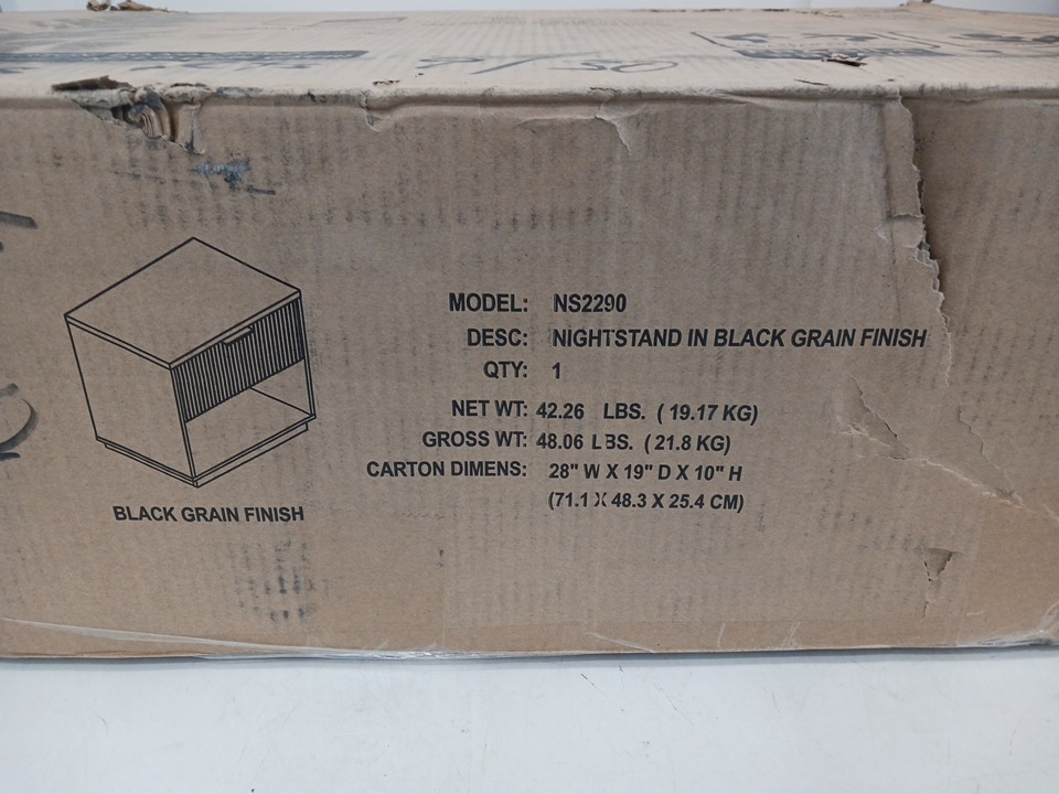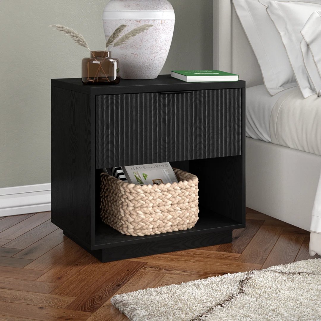 Ebern Designs Nolin 24″ Wide Rectangular Nightstand with Fluted Front Detailing, Durable MDF and Veneer Wood Construction Sleek Metal Drawer Pulls and Sturdy Tapered Legs - Black (Model: NS2290)