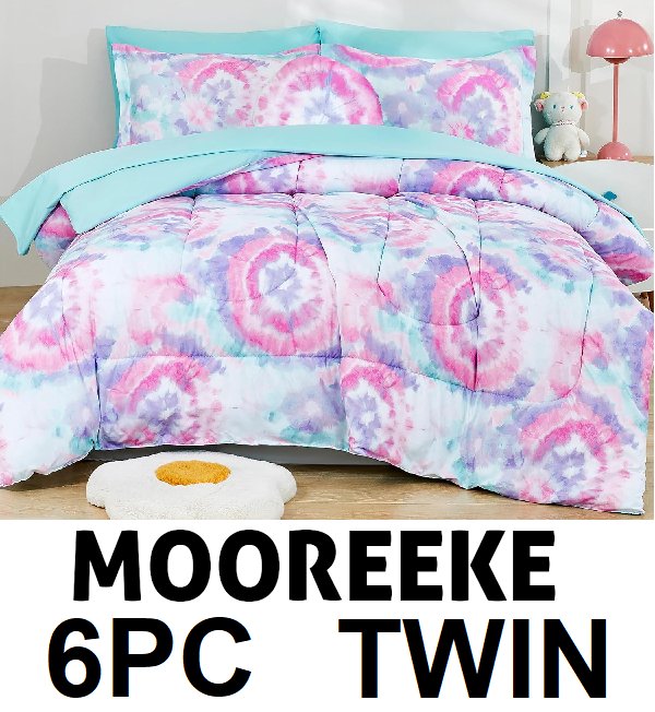 6pc Mooreeke Kids Comforter Bed Set - twin - Dark Pink Round Flower