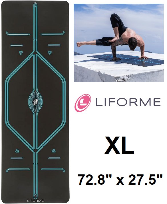 liforme sweat resistant thick yoga mat - 2mm x 72.8"x27.5" - mountain in black/blue