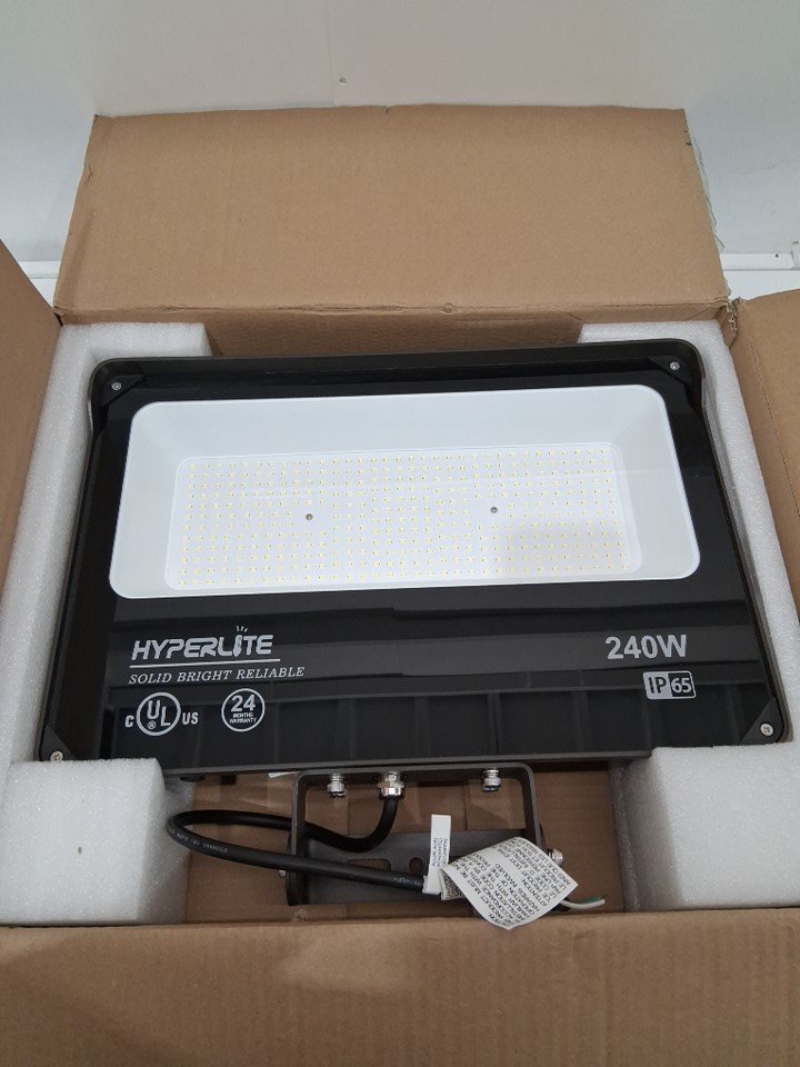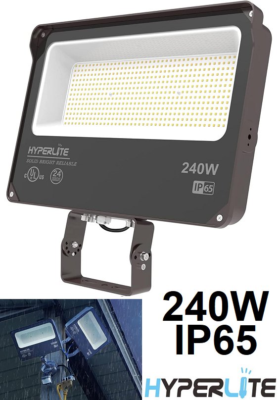HYPERLITE outdoor hardwired waterproof LED floodlight - 240w - 5000k - 28800lm - ip65 - black (model: ces-ls-vn-240w50120l)