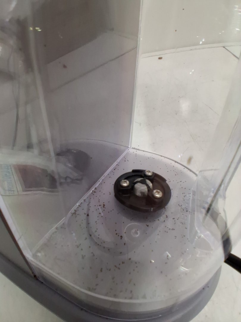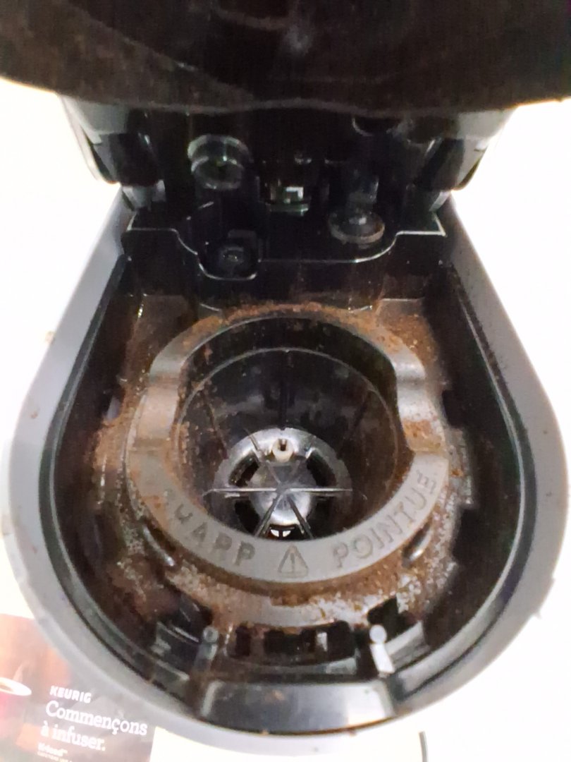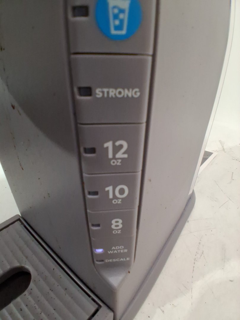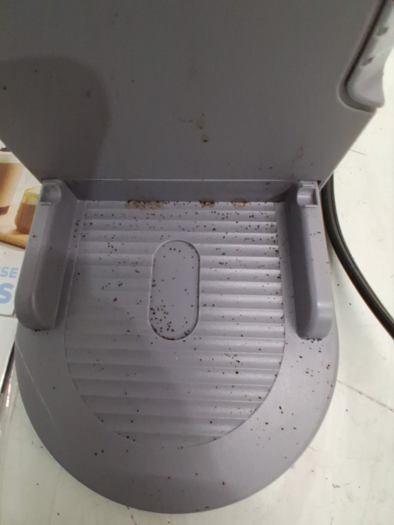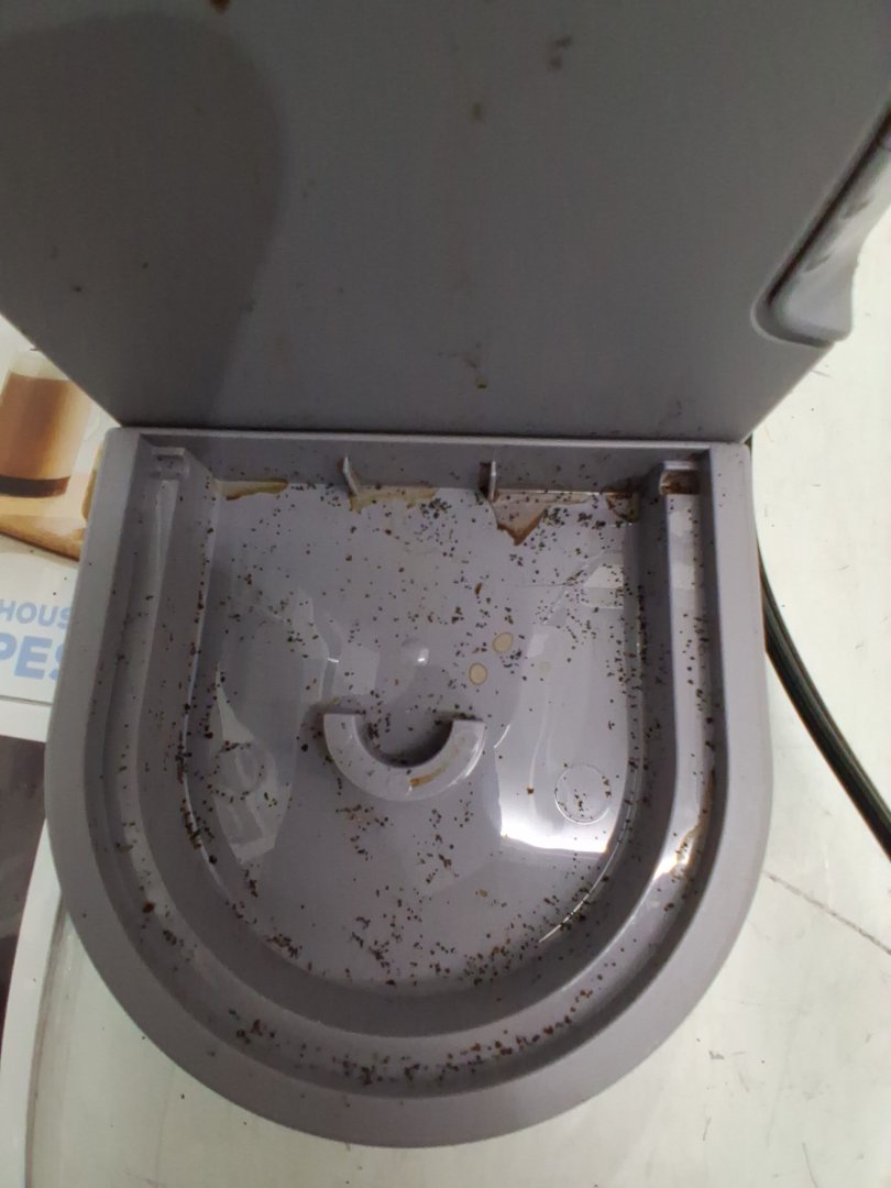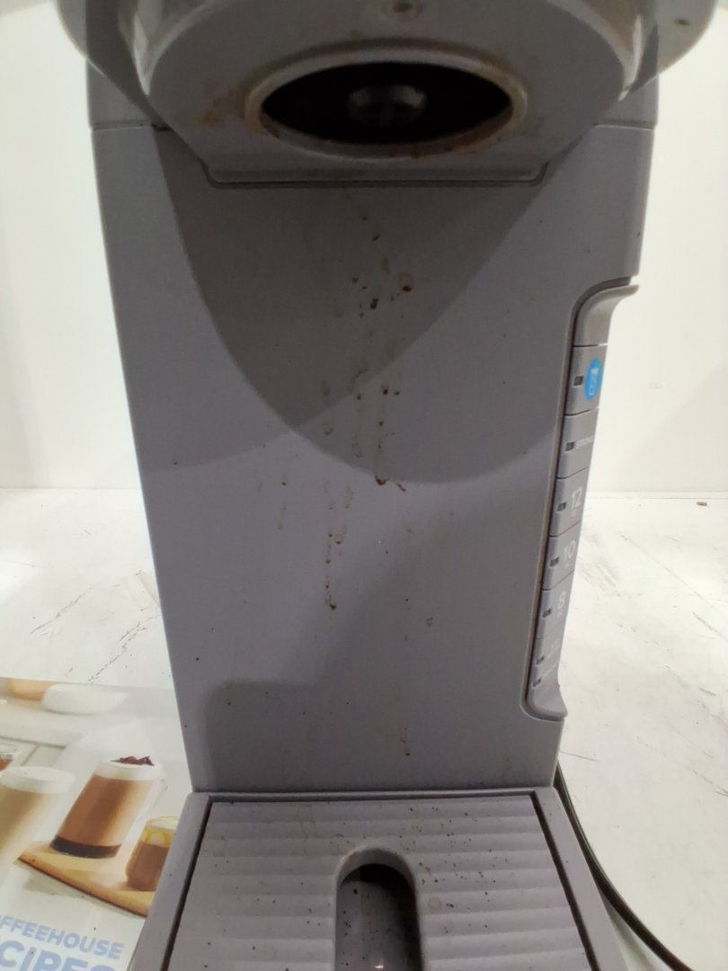 Coffee grinds/stains on various areas of coffee maker from previous use. Tested for power