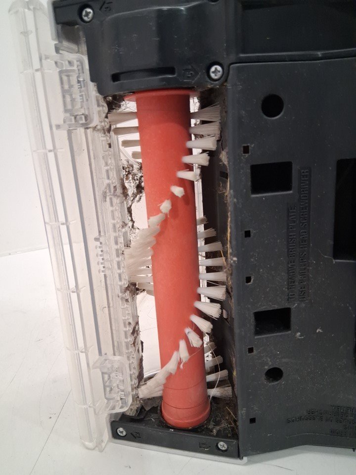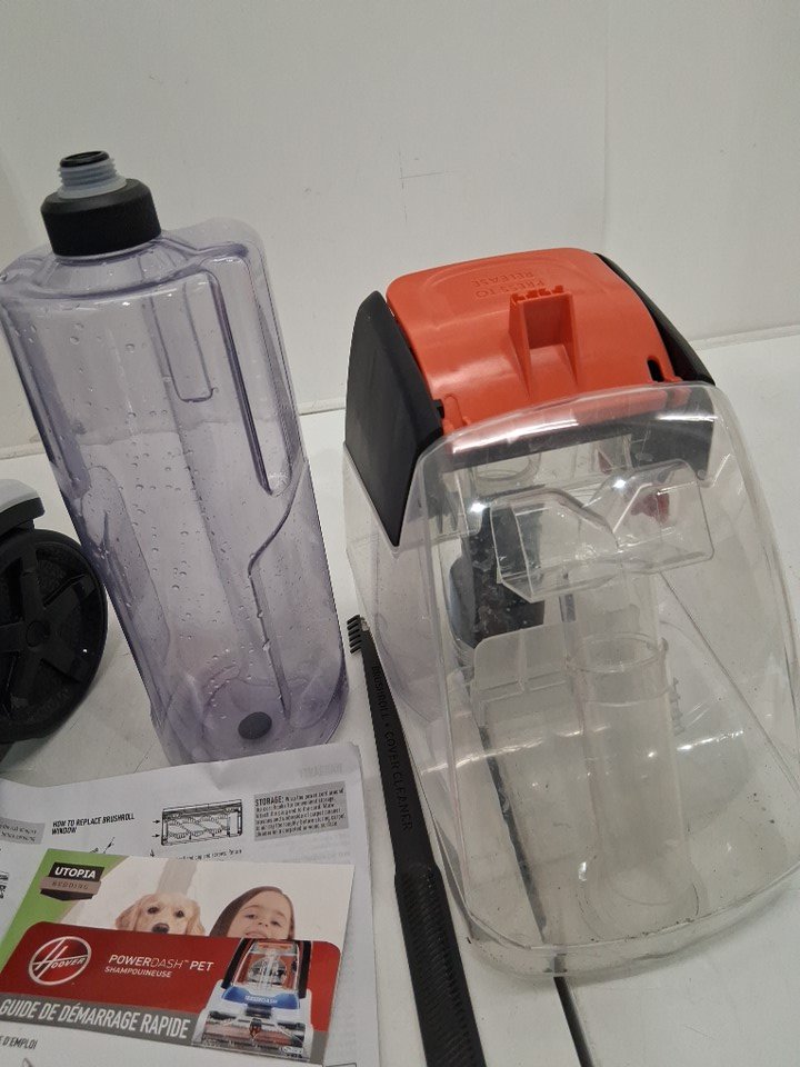 item has some fuzz/hair on brush from previous use as well as some water debris inside shown in pictures item is also missing the handle which can be bought in amazon (we leave you a link so you can search) https://www.amazon.ca/XCESS-XPRESS-Assembly-Powerdash-FH50700/dp/B0BX7JFGG8 tested for power and functionality