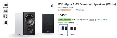 (1 pair) PSB Alpha AM3 POWERED BLUETOOTH Bookshelf Speaker - white