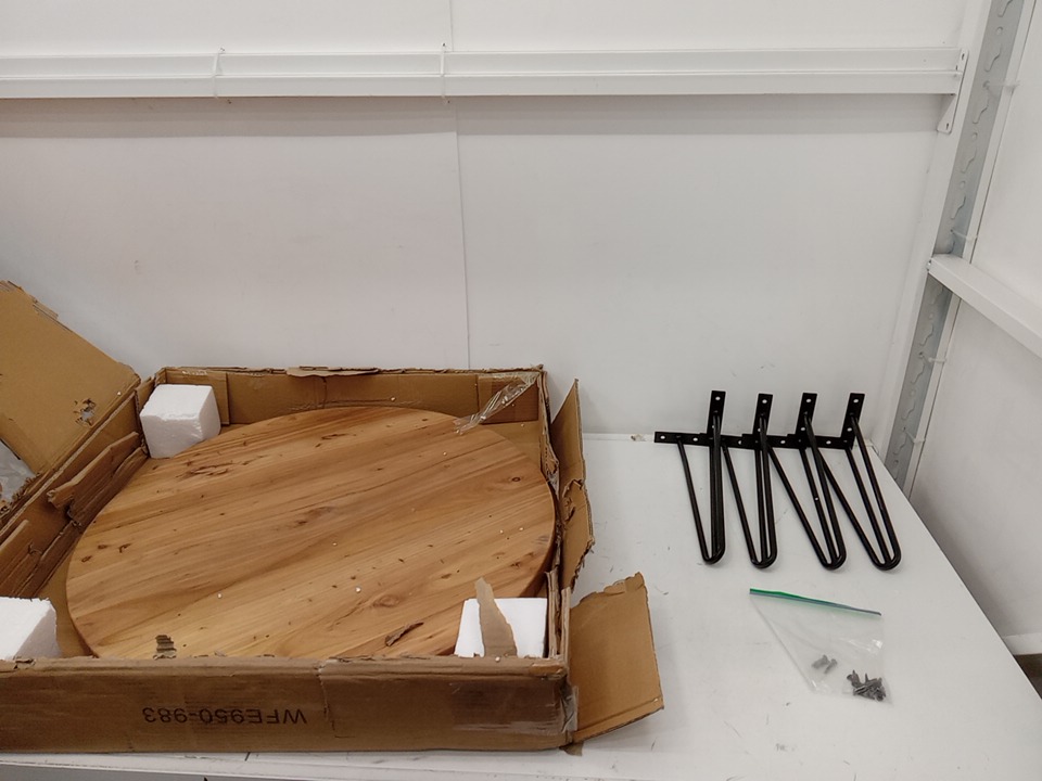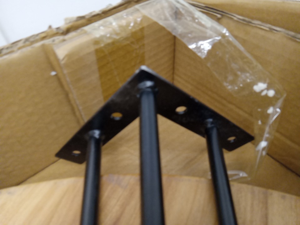their are a few white blemish marks on the metal legs of this item, this seems to be due to shipping and handling. all vital parts for assembly are present. see photos below.