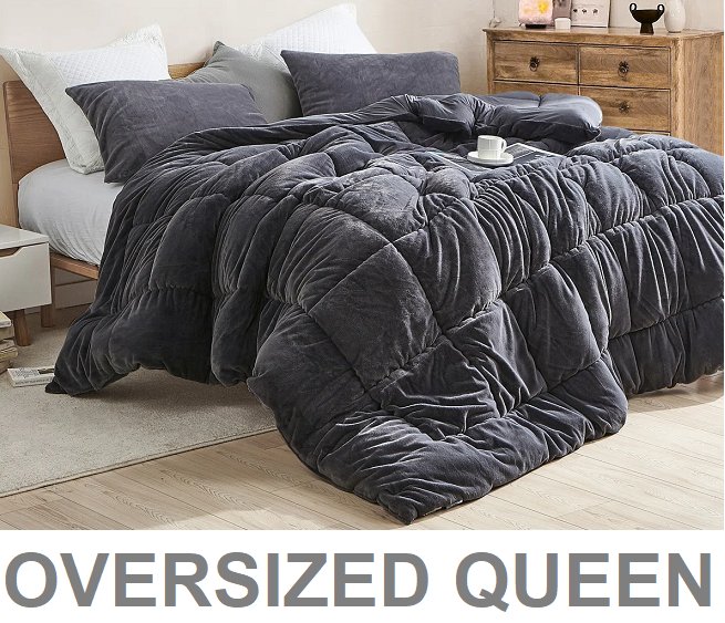 byourbed soft smooth faux fur comforter - oversized queen - grey (model: j1j-628-sfty-qn)
