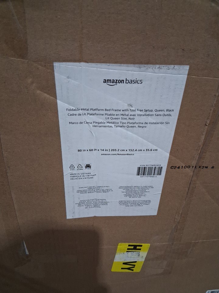AMAZONBASICS FOLDABLE METAL PLATFORM BED FRAME for Under-Bed Storage - No Box Spring Needed - 14" x 80" x 60" - QUEEN