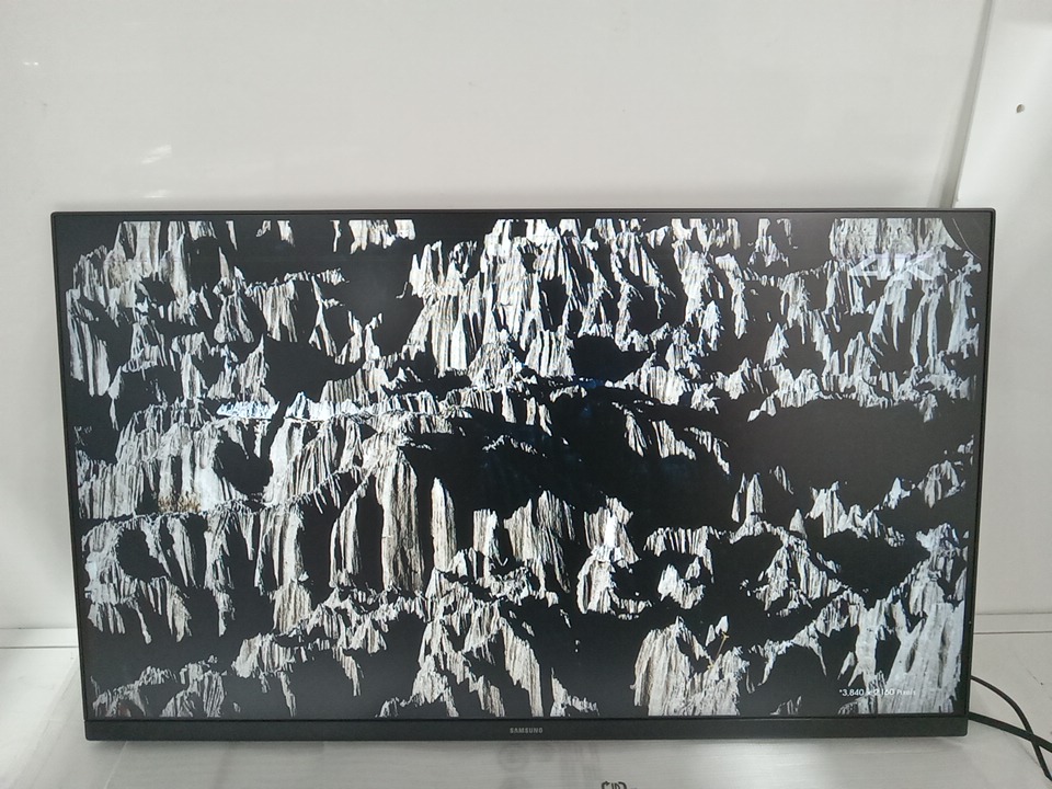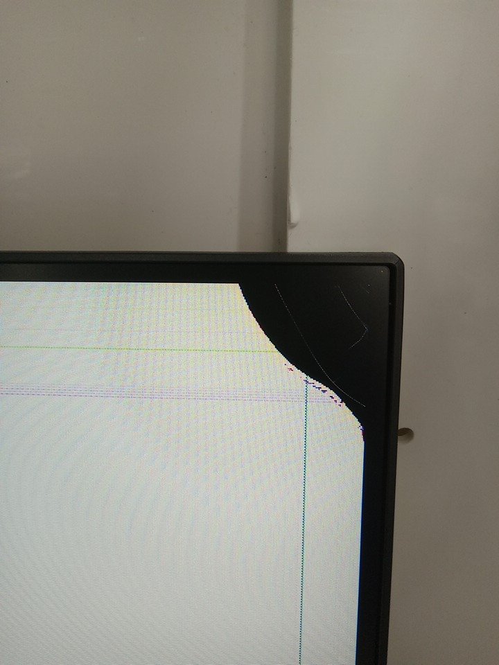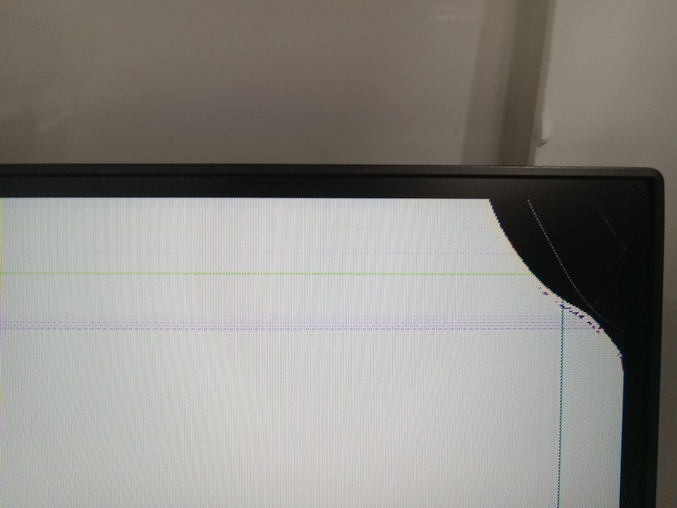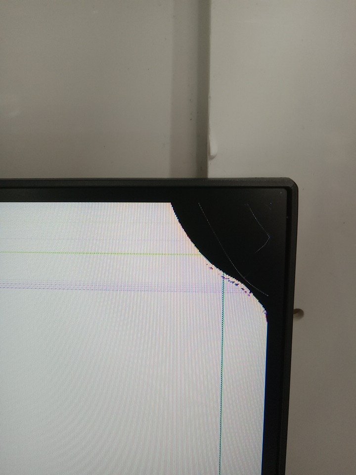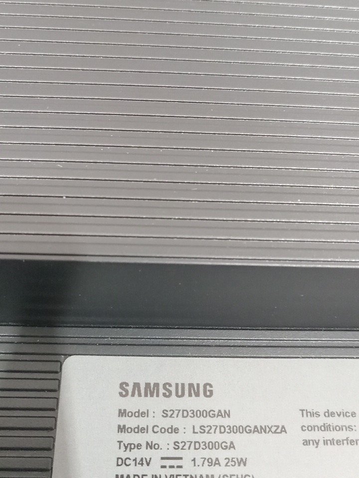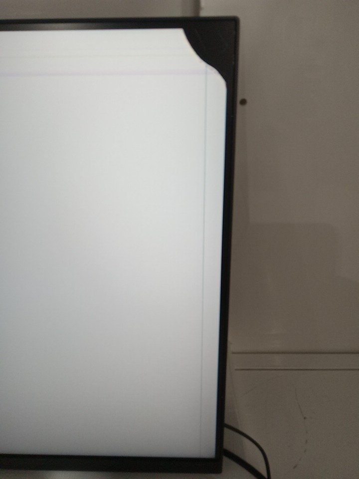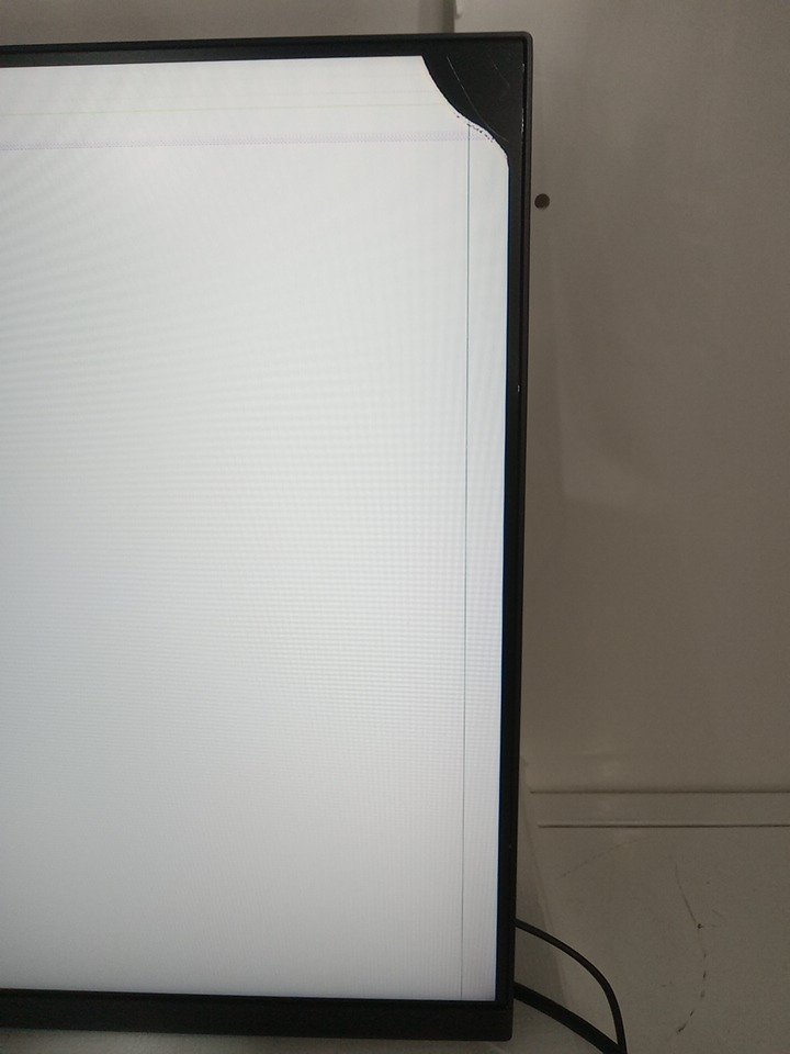 Please note that there is a display issue: a minor crack in the top-right corner has caused a black blotch in that area. Additionally, there are three vertical dead pixel lines on the right side of the screen, along with multiple horizontal dead pixel lines affecting the top 15% of the display. Generic hardware will require to install the mounting stand. Tested for power and functionality. (Please see photos)