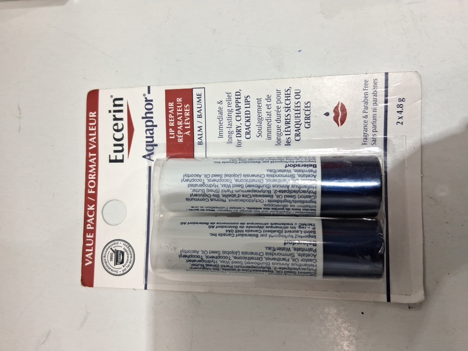 2 Eucerin Aquaphor Lip Repair Stick for Dry Lips - 4.8g each